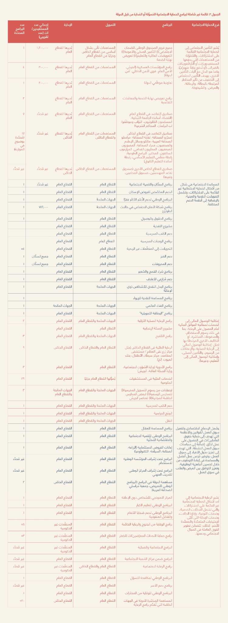 قائمة برامج الحماية الاجتماعية المُموَّلة أو المُدارة من قِبل الدولة
