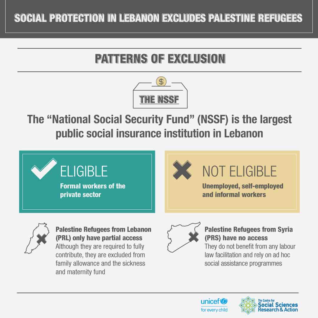The laws and regulations relevant to social protection are systemically exclusionary and fail to protect a vast majority of the population. As access to national social security schemes is linked to formal labour, Palestine refugees in Lebanon encounter legislative and practical barriers in obtaining work contracts and accessing social security. Barriers in accessing formal labour and hence social insurance have transformed Palestine refugees into long-term recipients of humanitarian assistance, and created a protracted situation of chronic vulnerability.
